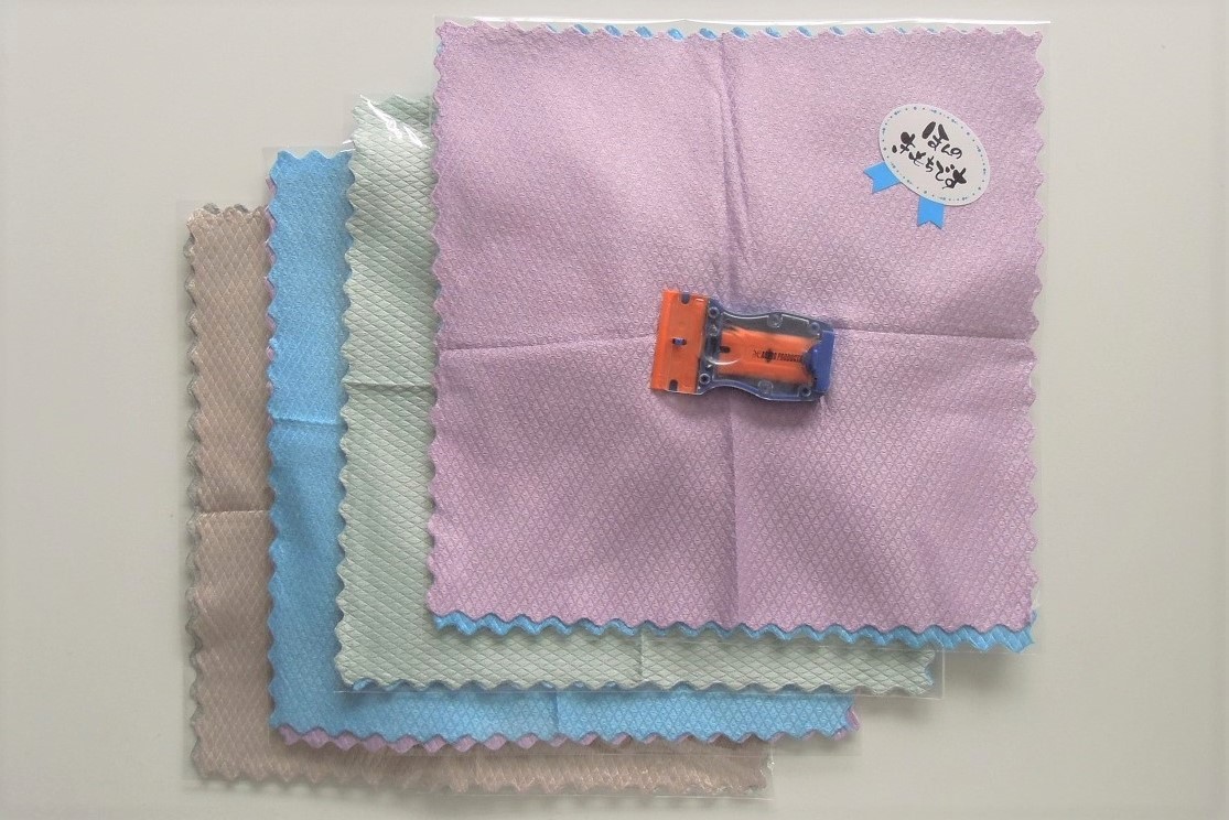 春のプレゼント企画として、ご予約いただいたお客さまに「ダイヤモンド柄マイクロファイバークロス」と「ミニプラスチックスクレーパー」を先着50名さまにプレゼントいたします。これらのアイテムを使ってお掃除すれば、仕上がりの変化に「感動」していただけるはずです。